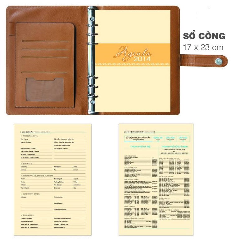 Có thể in logo nhiều màu ở bìa sổ, hoặc ép chìm logo, ép nhũ bạc hoặc nhũ vàng để tăng độ sang trọng và nổi bật.