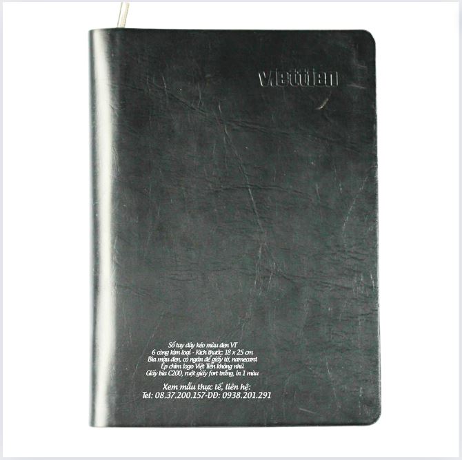 Sổ tay có dây kéo màu đen in logo Việt Tiến