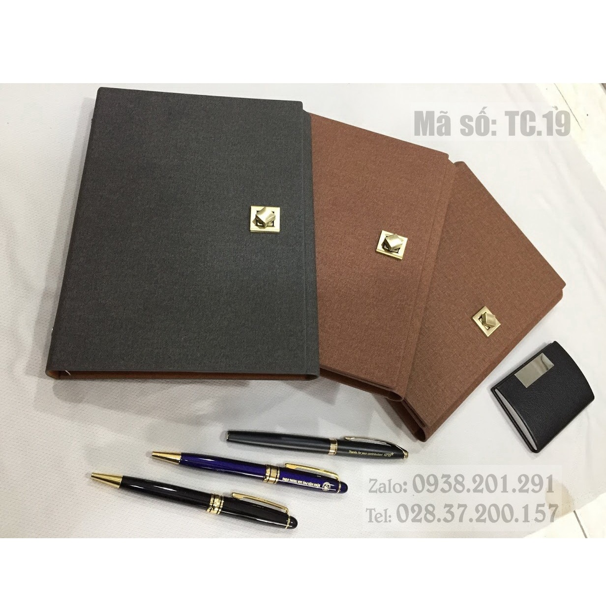 Quy cách: Gáy còng 6 khoen (có thể tháo ruột sổ để bổ sung, thay thế), cạnh sổ được sơn cạnh theo màu tương đồng với bìa sổ. Mặt trong của bìa có các ngăn đựng thẻ, đựng namecard, chỗ gài bút...